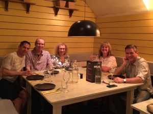 We also embarked on our annual walking weekend with friends, a bit earlier in the year than usual. We went to Wirksworth in the peaks, and this time self catered. We hired a lovely big house in the centre, which had previously been old the council offices for a while, it was a great venue. We even had a sauna and a cinema room. On the Saturday in the day we did a very damp walk around Carsington Water, and in the evening played a murder mystery game. Brief synopsis is – The Lord of the Manor, Lord Heathcliffe, had been murdered on the day of a dinner party to introduce his new young bride to his friends, and we had to ascertain who did it. Everybody is given a part to play with costume suggestions. I had the part of the housekeeper Mrs Withering, who as it turns out had been secretly in love with Lord Heathcliffe. As there were more men than women in the group one of them (Mart) had to play a women, so Mart ended up with the role of the cleaner, Cinders!!